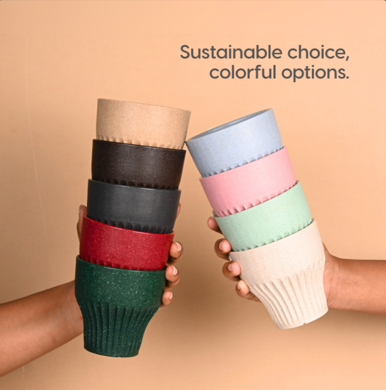 Earth Friendly Sports Coffee Mug with Lid | | 250 ml | Made with Rice Husk | Microwave Safe Mugs for Gifting